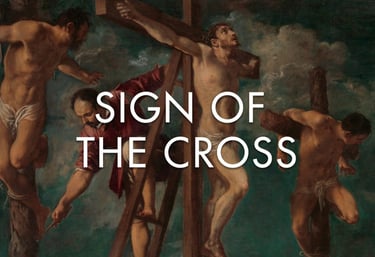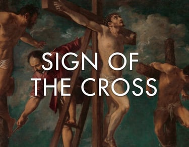 • The Sign of the Cross: We trace the sign of the cross upon ourselves with our hand as we say “the Son” to remind us that Jesus Christ died on the cross for our sins and that it was this sign that was traced upon us when we were baptized. We gather together as those who have been baptized into the Name of God and have been redeemed (purchased from our sins, death and the power of the devil) by Christ, who was crucified for our sins and raised from the dead for our justification (God’s declaration that we who believe and are baptized are righteous, just and holy in His sight).